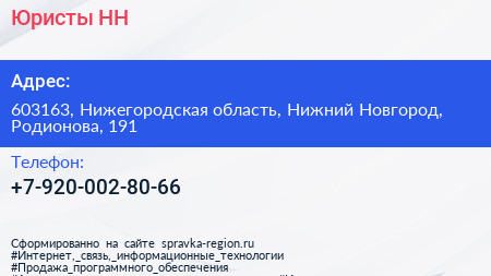Юристы-НН по адресу 603163, Нижегородская область, Нижний Новгород, Родионова, 191 в дальнейшем Организация, размещена в следующих категориях: