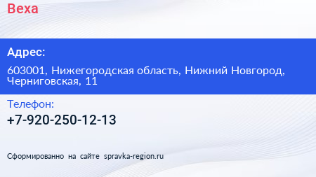 Веха по адресу 603001, Нижегородская область, Нижний Новгород, Черниговская, 11 в дальнейшем Организация, размещена в следующих категориях: