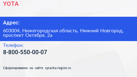 YOTA по адресу 603004, Нижегородская область, Нижний Новгород, проспект Октября, 2а в дальнейшем Организация, размещена в следующих категориях: