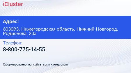 iCluster по адресу 603093, Нижегородская область, Нижний Новгород, Родионова, 23а в дальнейшем Организация, размещена в следующих категориях: