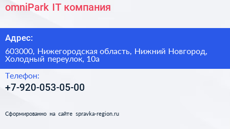 omniPark, IT-компания по адресу 603000, Нижегородская область, Нижний Новгород, Холодный переулок, 10а в дальнейшем Организация, размещена в следующих категориях: