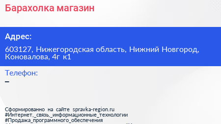 Барахолка, магазин по адресу 603127, Нижегородская область, Нижний Новгород, Коновалова, 4г к1 в дальнейшем Организация, размещена в следующих категориях: