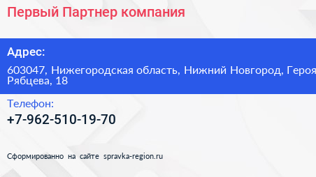 Первый Партнер, компания по адресу 603047, Нижегородская область, Нижний Новгород, Героя Рябцева, 18 в дальнейшем Организация, размещена в следующих категориях: