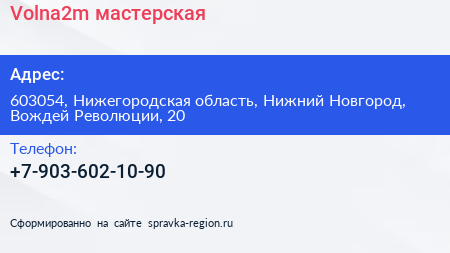 Volna2m, мастерская по адресу 603054, Нижегородская область, Нижний Новгород, Вождей Революции, 20 в дальнейшем Организация, размещена в следующих категориях: