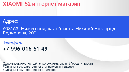 XIAOMI 52, интернет-магазин по адресу 603163, Нижегородская область, Нижний Новгород, Родионова, 200 в дальнейшем Организация, размещена в следующих категориях: