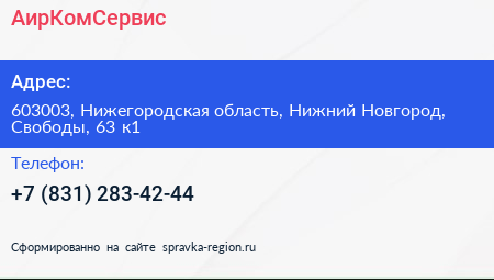 АирКомСервис по адресу 603003, Нижегородская область, Нижний Новгород, Свободы, 63 к1 в дальнейшем Организация, размещена в следующих категориях: