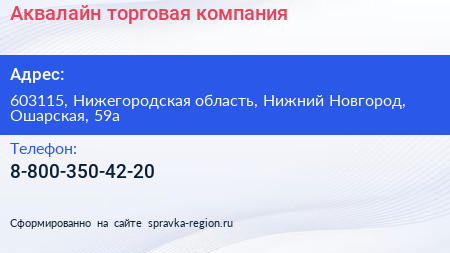 Аквалайн, торговая компания по адресу 603115, Нижегородская область, Нижний Новгород, Ошарская, 59а в дальнейшем Организация, размещена в следующих категориях: