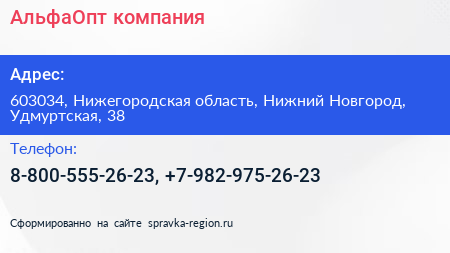 АльфаОпт, компания по адресу 603034, Нижегородская область, Нижний Новгород, Удмуртская, 38 в дальнейшем Организация, размещена в следующих категориях: