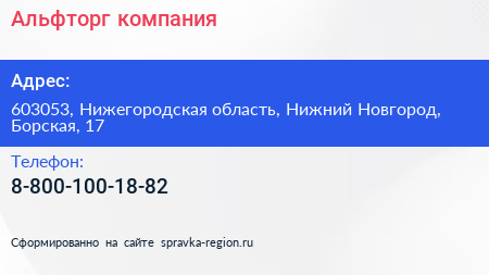 Альфторг, компания по адресу 603053, Нижегородская область, Нижний Новгород, Борская, 17 в дальнейшем Организация, размещена в следующих категориях: