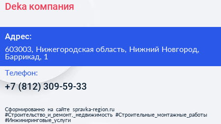 Deka, компания по адресу 603003, Нижегородская область, Нижний Новгород, Баррикад, 1 в дальнейшем Организация, размещена в следующих категориях: