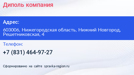 Диполь, компания по адресу 603006, Нижегородская область, Нижний Новгород, Решетниковская, 4 в дальнейшем Организация, размещена в следующих категориях: