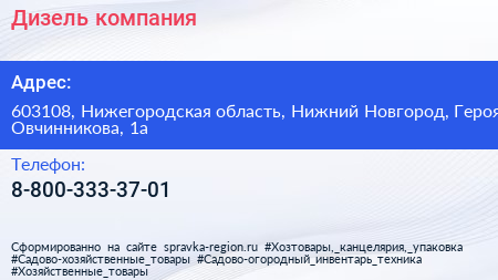 Дизель, компания по адресу 603108, Нижегородская область, Нижний Новгород, Героя Овчинникова, 1а в дальнейшем Организация, размещена в следующих категориях: