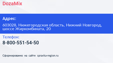 DozaMix по адресу 603028, Нижегородская область, Нижний Новгород, шоссе Жиркомбината, 20 в дальнейшем Организация, размещена в следующих категориях: