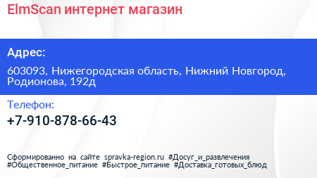 ElmScan, интернет-магазин по адресу 603093, Нижегородская область, Нижний Новгород, Родионова, 192д в дальнейшем Организация, размещена в следующих категориях:
