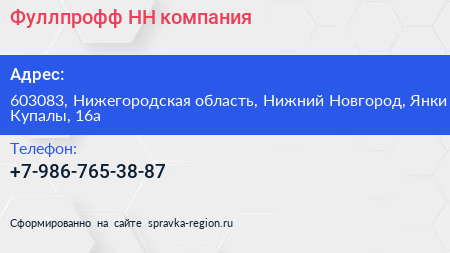 Фуллпрофф НН, компания по адресу 603083, Нижегородская область, Нижний Новгород, Янки Купалы, 16а в дальнейшем Организация, размещена в следующих категориях: