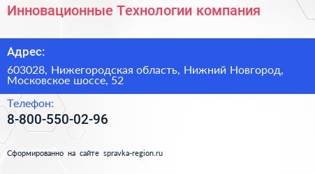 Инновационные Технологии, компания по адресу 603028, Нижегородская область, Нижний Новгород, Московское шоссе, 52 в дальнейшем Организация, размещена в следующих категориях: