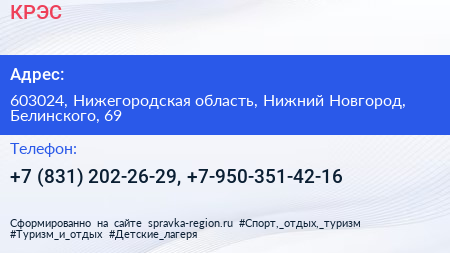 КРЭС по адресу 603024, Нижегородская область, Нижний Новгород, Белинского, 69 в дальнейшем Организация, размещена в следующих категориях: