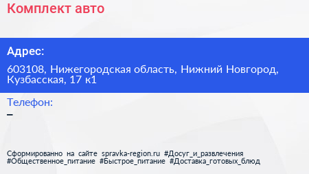 Комплект авто по адресу 603108, Нижегородская область, Нижний Новгород, Кузбасская, 17 к1 в дальнейшем Организация, размещена в следующих категориях: