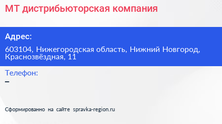 МТ, дистрибьюторская компания по адресу 603104, Нижегородская область, Нижний Новгород, Краснозвёздная, 11 в дальнейшем Организация, размещена в следующих категориях: