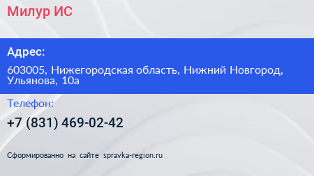 Милур ИС по адресу 603005, Нижегородская область, Нижний Новгород, Ульянова, 10а в дальнейшем Организация, размещена в следующих категориях: