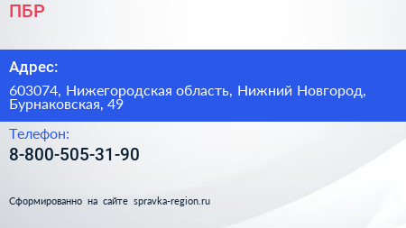 ПБР по адресу 603074, Нижегородская область, Нижний Новгород, Бурнаковская, 49 в дальнейшем Организация, размещена в следующих категориях: