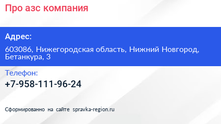 Про-азс, компания по адресу 603086, Нижегородская область, Нижний Новгород, Бетанкура, 3 в дальнейшем Организация, размещена в следующих категориях: