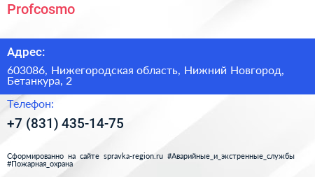 Profcosmo по адресу 603086, Нижегородская область, Нижний Новгород, Бетанкура, 2 в дальнейшем Организация, размещена в следующих категориях:
