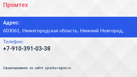 Промтех по адресу 603061, Нижегородская область, Нижний Новгород, в дальнейшем Организация, размещена в следующих категориях: