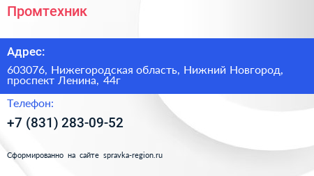 Промтехник по адресу 603076, Нижегородская область, Нижний Новгород, проспект Ленина, 44г в дальнейшем Организация, размещена в следующих категориях: