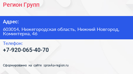 Регион-Групп по адресу 603014, Нижегородская область, Нижний Новгород, Коминтерна, 46 в дальнейшем Организация, размещена в следующих категориях: