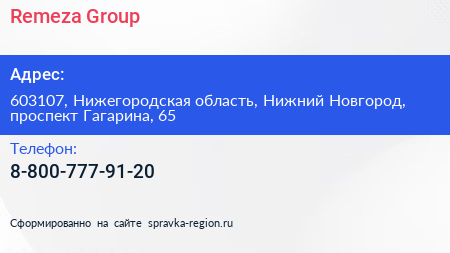 Remeza Group по адресу 603107, Нижегородская область, Нижний Новгород, проспект Гагарина, 65 в дальнейшем Организация, размещена в следующих категориях: