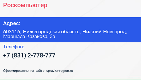 Роскомпьютер по адресу 603116, Нижегородская область, Нижний Новгород, Маршала Казакова, 3а в дальнейшем Организация, размещена в следующих категориях: