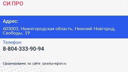 СИ ПРО по адресу 603003, Нижегородская область, Нижний Новгород, Свободы, 19 в дальнейшем Организация, размещена в следующих категориях:
