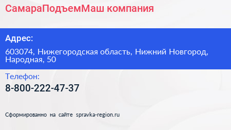 СамараПодъемМаш, компания по адресу 603074, Нижегородская область, Нижний Новгород, Народная, 50 в дальнейшем Организация, размещена в следующих категориях: