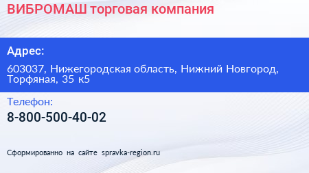 ВИБРОМАШ, торговая компания по адресу 603037, Нижегородская область, Нижний Новгород, Торфяная, 35 к5 в дальнейшем Организация, размещена в следующих категориях: