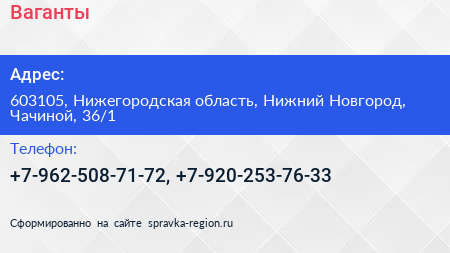Ваганты по адресу 603105, Нижегородская область, Нижний Новгород, Чачиной, 36/1 в дальнейшем Организация, размещена в следующих категориях: