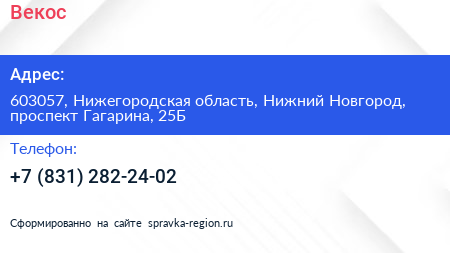Векос по адресу 603057, Нижегородская область, Нижний Новгород, проспект Гагарина, 25Б в дальнейшем Организация, размещена в следующих категориях: