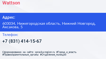 Wattson по адресу 603034, Нижегородская область, Нижний Новгород, Аксакова, 5 в дальнейшем Организация, размещена в следующих категориях: