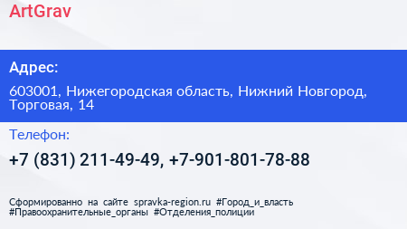 ArtGrav по адресу 603001, Нижегородская область, Нижний Новгород, Торговая, 14 в дальнейшем Организация, размещена в следующих категориях: