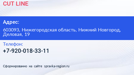 CUT LINE по адресу 603093, Нижегородская область, Нижний Новгород, Деловая, 19 в дальнейшем Организация, размещена в следующих категориях: