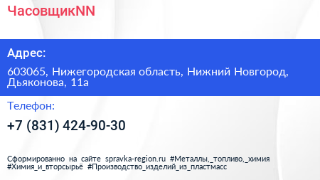 ЧасовщикNN по адресу 603065, Нижегородская область, Нижний Новгород, Дьяконова, 11а в дальнейшем Организация, размещена в следующих категориях: