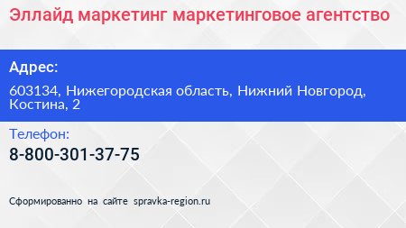 Эллайд маркетинг, маркетинговое агентство по адресу 603134, Нижегородская область, Нижний Новгород, Костина, 2 в дальнейшем Организация, размещена в следующих категориях: