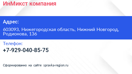 ИнМикст, компания по адресу 603093, Нижегородская область, Нижний Новгород, Родионова, 136 в дальнейшем Организация, размещена в следующих категориях: