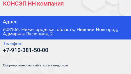 КОНСЭП-НН, компания по адресу 603106, Нижегородская область, Нижний Новгород, Адмирала Васюнина, 2 в дальнейшем Организация, размещена в следующих категориях: