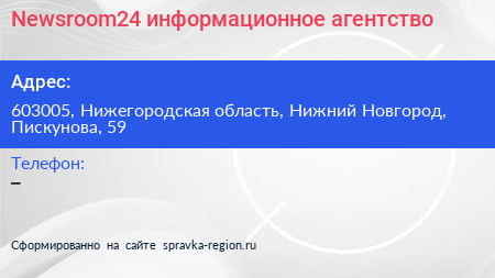 Newsroom24, информационное агентство по адресу 603005, Нижегородская область, Нижний Новгород, Пискунова, 59 в дальнейшем Организация, размещена в следующих категориях:
