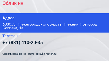 Облик-нн по адресу 603053, Нижегородская область, Нижний Новгород, Ковпака, 1а в дальнейшем Организация, размещена в следующих категориях: