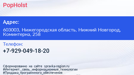 PopHolst по адресу 603003, Нижегородская область, Нижний Новгород, Коминтерна, 258 в дальнейшем Организация, размещена в следующих категориях: