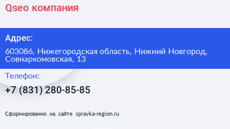 Qseo, компания по адресу 603086, Нижегородская область, Нижний Новгород, Совнаркомовская, 13 в дальнейшем Организация, размещена в следующих категориях:
