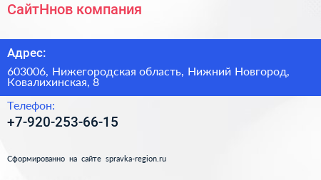 СайтНнов, компания по адресу 603006, Нижегородская область, Нижний Новгород, Ковалихинская, 8 в дальнейшем Организация, размещена в следующих категориях: