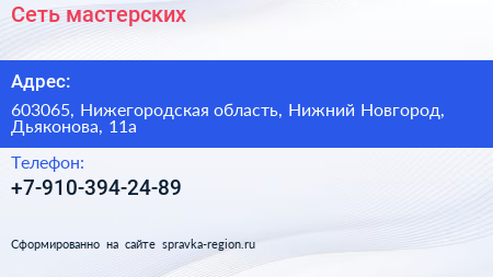 Сеть мастерских по адресу 603065, Нижегородская область, Нижний Новгород, Дьяконова, 11а в дальнейшем Организация, размещена в следующих категориях:
